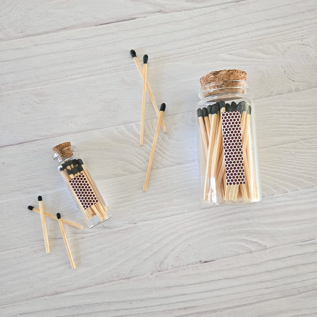 Safety matches in very nice glass jars...A great addition to any candle order!
