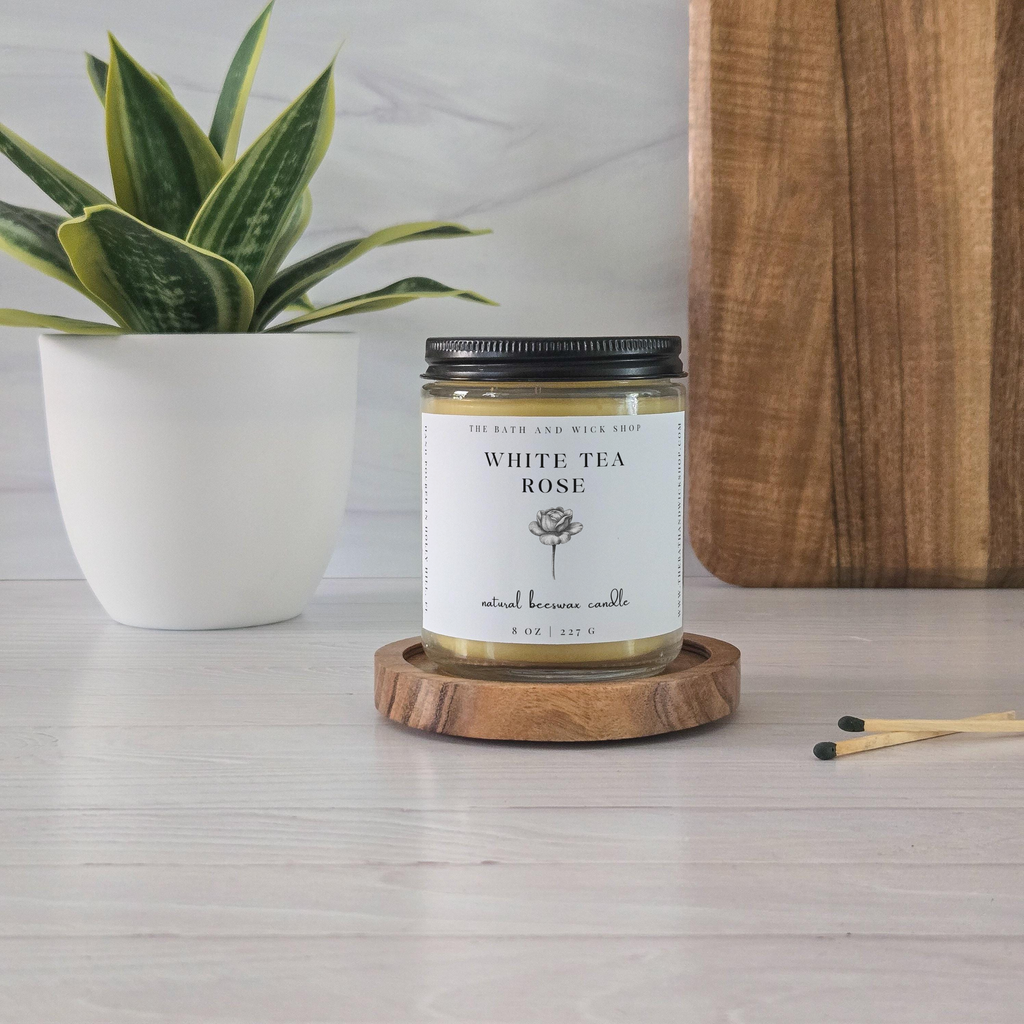 White Tea Rose Natural Beeswax Candle